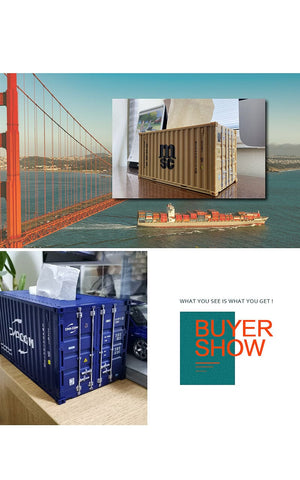 Do away with those boring tissue boxes and cover them with a tissue box cover designed to look like a shipping container. Ideal for the office, or for your man cave.
